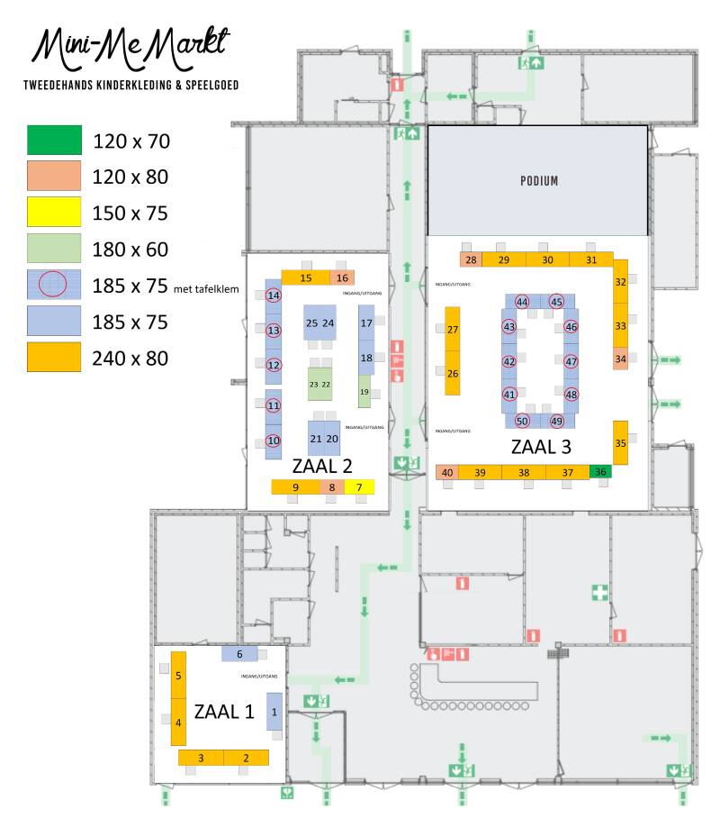 Tafelmaat M staat in zaal 1, zaal 2 en zaal 3 en bevat de volgende typen: